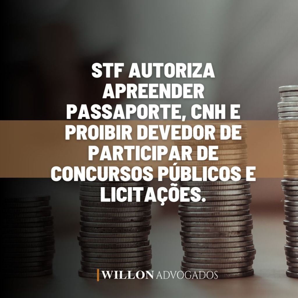 Com o entendimento da Corte, juízes poderão determinar a apreensão do passaporte ou da Carteira Nacional de Habilitação, bem como proibir a participação em concursos públicos e licitações, para garantir o pagamento de dívidas.