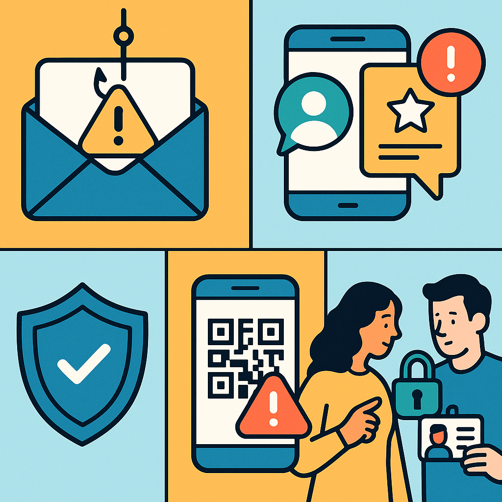 Descrição: QR Codes que levam a sites para captura de dados bancários ou pedem instalação de APKs fora da loja oficial.